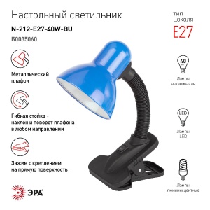 Настольная лампа Эра N-212-E27-40W-BU Б0035060
