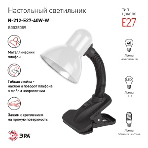 Настольная лампа Эра N-212-E27-40W-W Б0035059