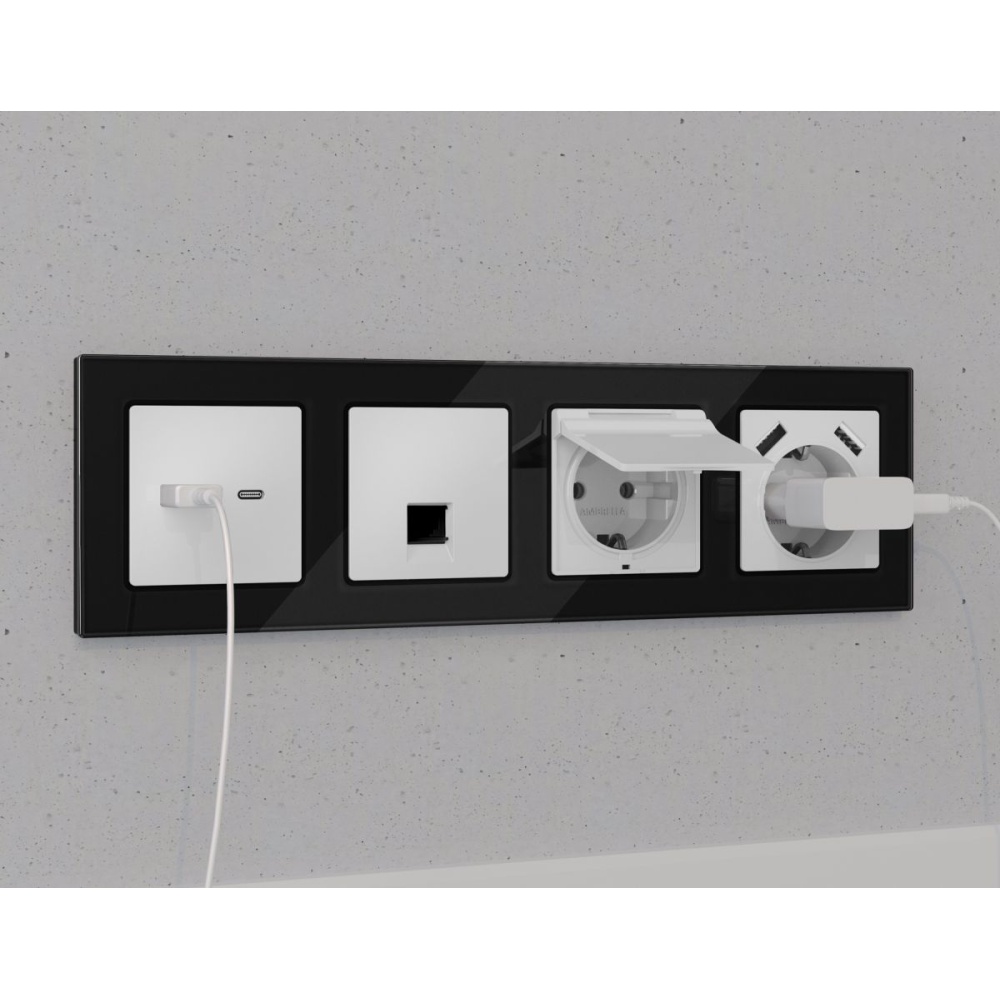 Комплект механизма компьютерной розетки RJ-45 экранированной с автоматической защитной шторкой Alfa Белый матовый Quant Ambrella Volt MA132005 (AP1320, VM185)