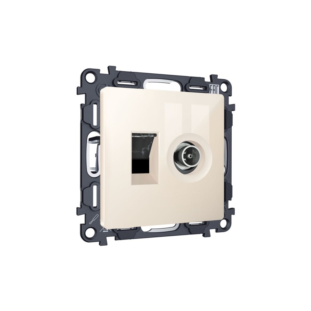 Комплект механизма розетки компьютерной + TV оконечной RJ-45 с автоматической защитной шторкой Alfa Бежевый глянец Ambrella Volt MA312510 (AP3125, VM195)