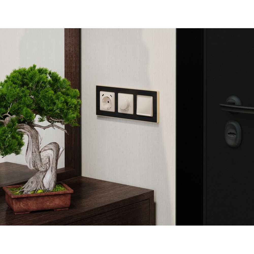 Комплект механизма терморегулятора с датчиком для теплого пола с подсветкой 16A-250V Alfa Бежевый глянец Quant Ambrella Volt MA305710 (AP3057, VM1381)