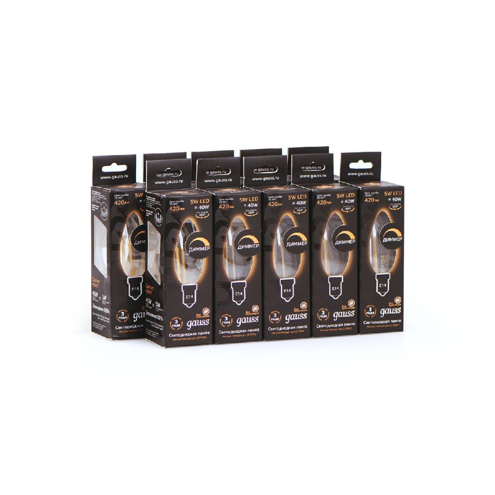 Лампа светодиодная диммируемая Gauss филаментная E14 5W 2700К прозрачная 103801105-D