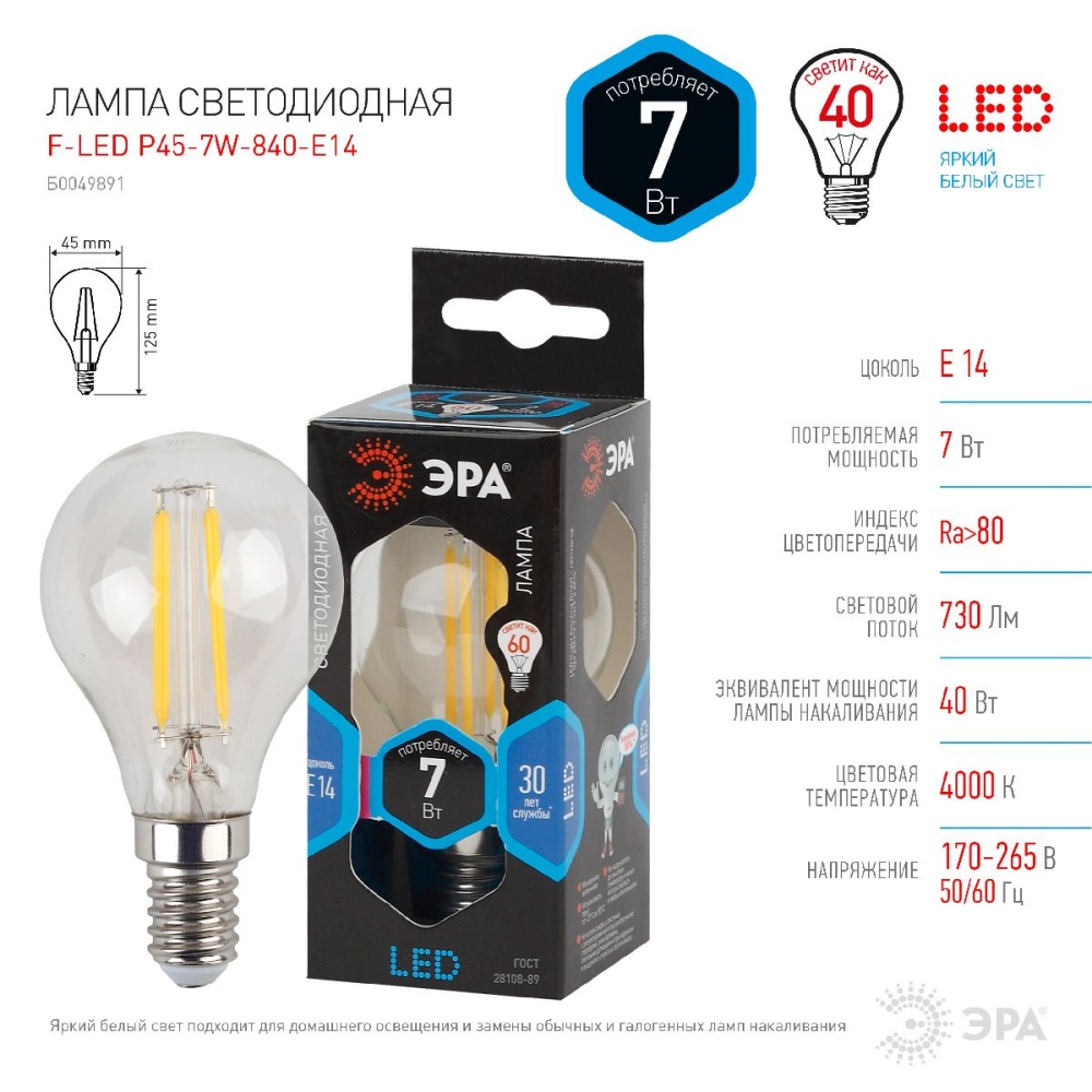 Коллекция: F-LED P45-7W-840-E14