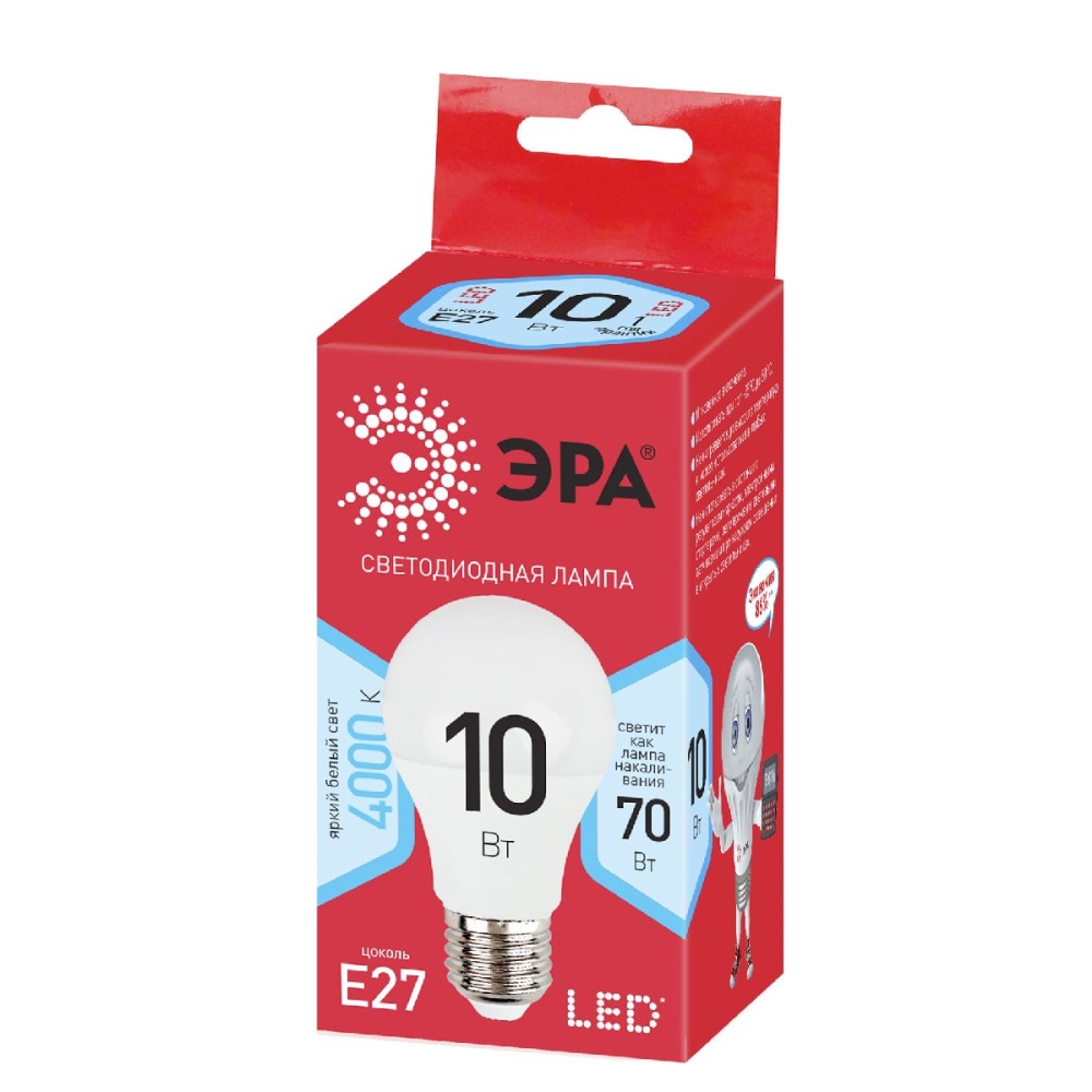 Лампа светодиодная Эра E27 10W 4000K ECO LED A60-10W-840-E27 Б0028005