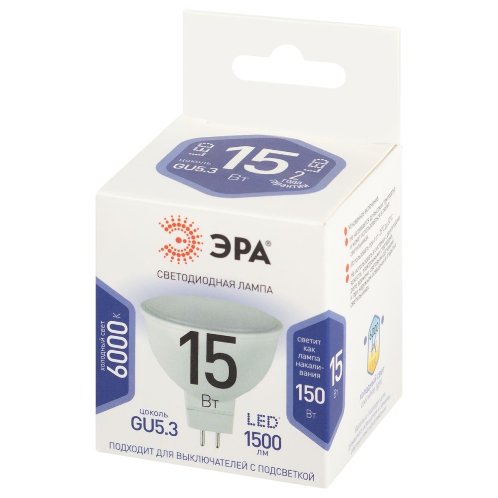 Лампа светодиодная Эра STD LED MR16-15W-860-GU5.3 6500K