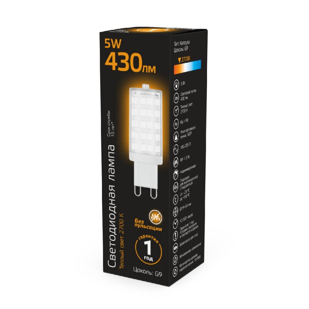 Лампа светодиодная Gauss G9 5W 2700К прозрачная 107309105