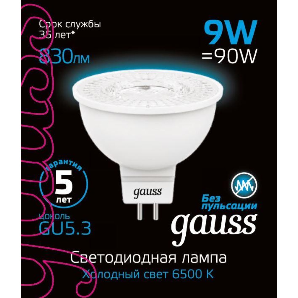 Лампа светодиодная Gauss GU5.3 9W 6500K матовая 101505309