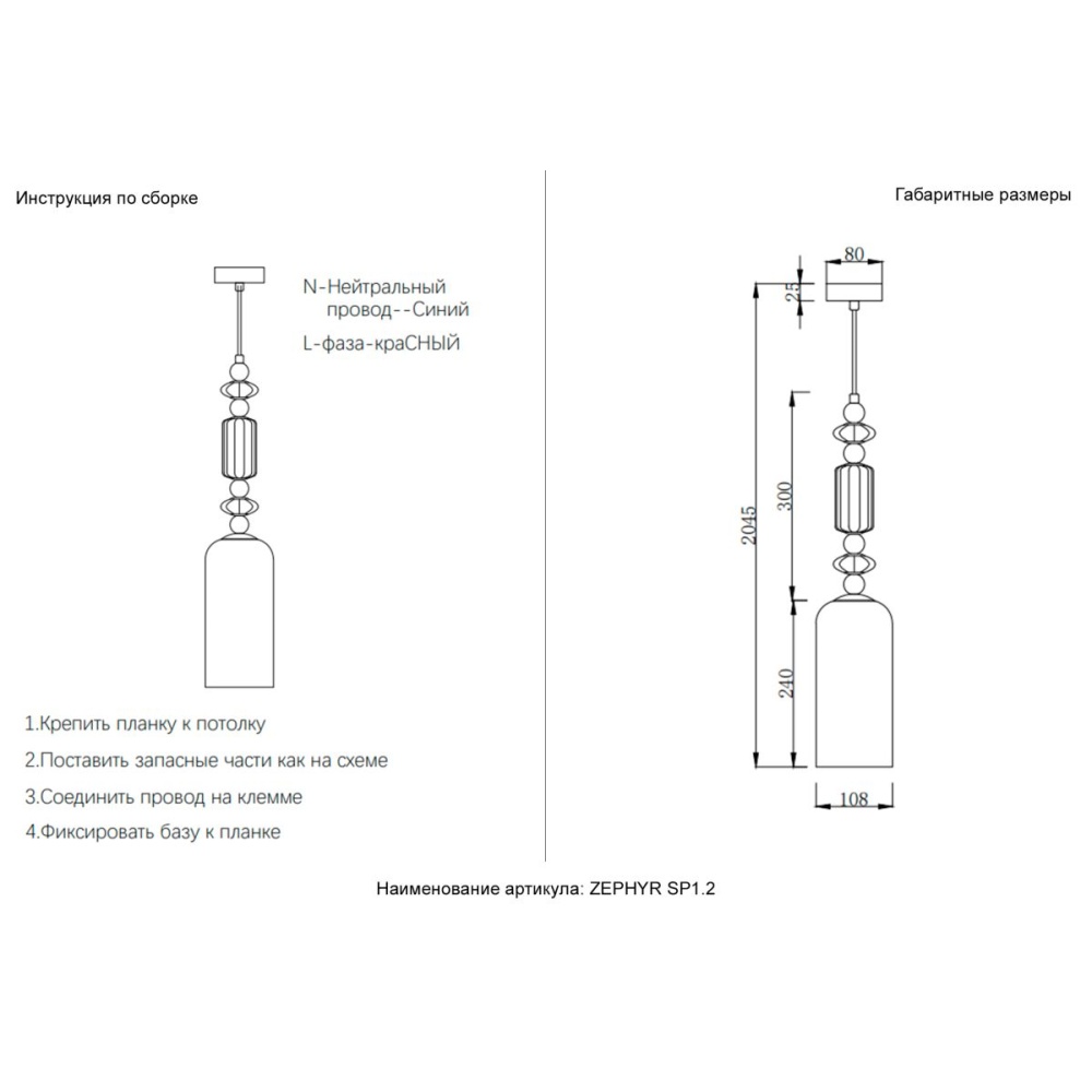 Подвесной светильник Crystal Lux ZEPHYR SP1.2