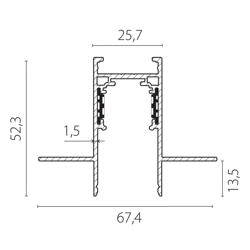 Шинопровод 4-контактный встраиваемый со стыковочным пазом 48V 3м (Заглушки и декоративный экран в комплекте) Lightstar Uno Pro 509237P
