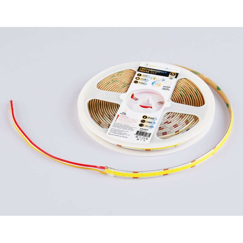 Светодиодная лента Ambrella Light Illumination COB 608Led/ 12W m/ 24V IP20 CCT 3000-6500K/ 5m*8mm*2.2mm (3 конт.) GS4901