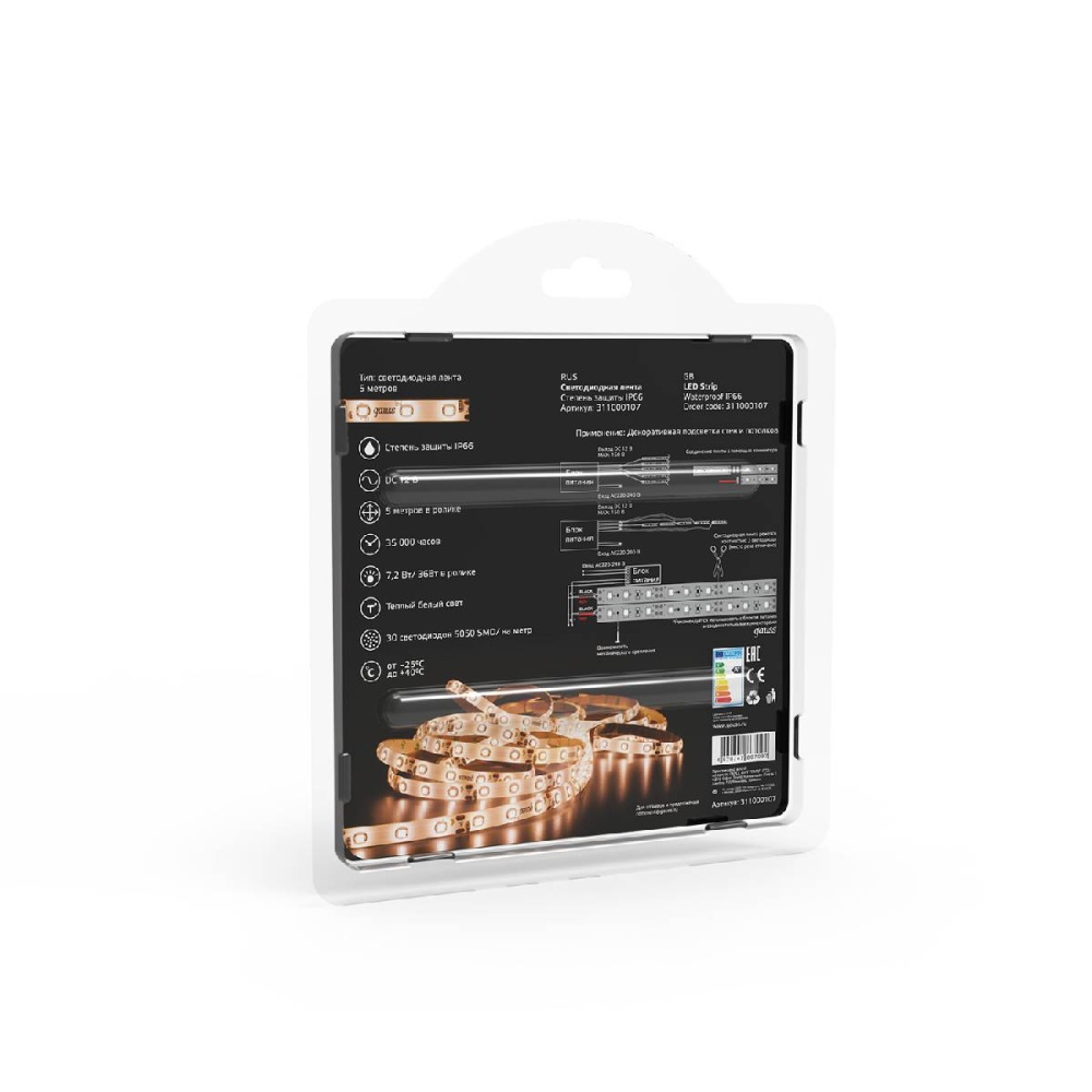 Светодиодная влагозащищенная лента Gauss 7,2W/m 30LED/m 5050SMD теплый белый 5M 311000107
