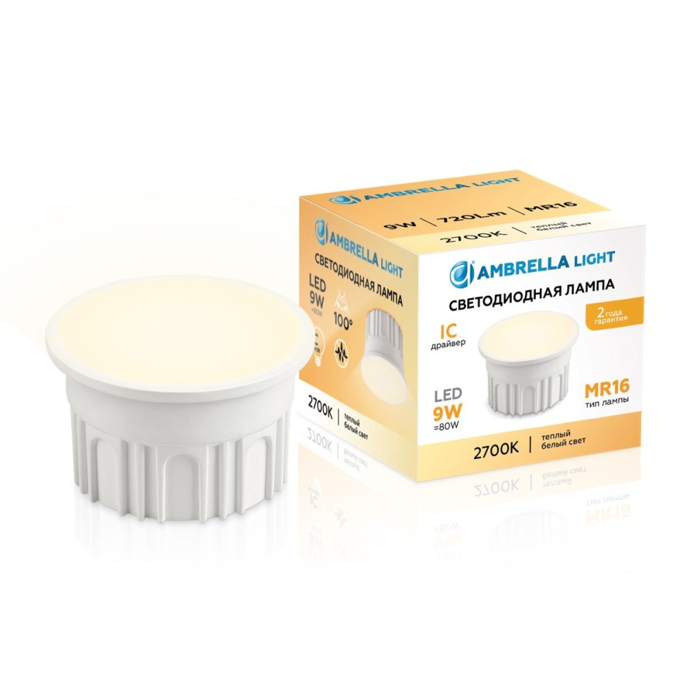 Светодиодный модуль Ambrella Light Bulbing LED MR16-DD 9W IC 2700K 220-240V 100° 212001